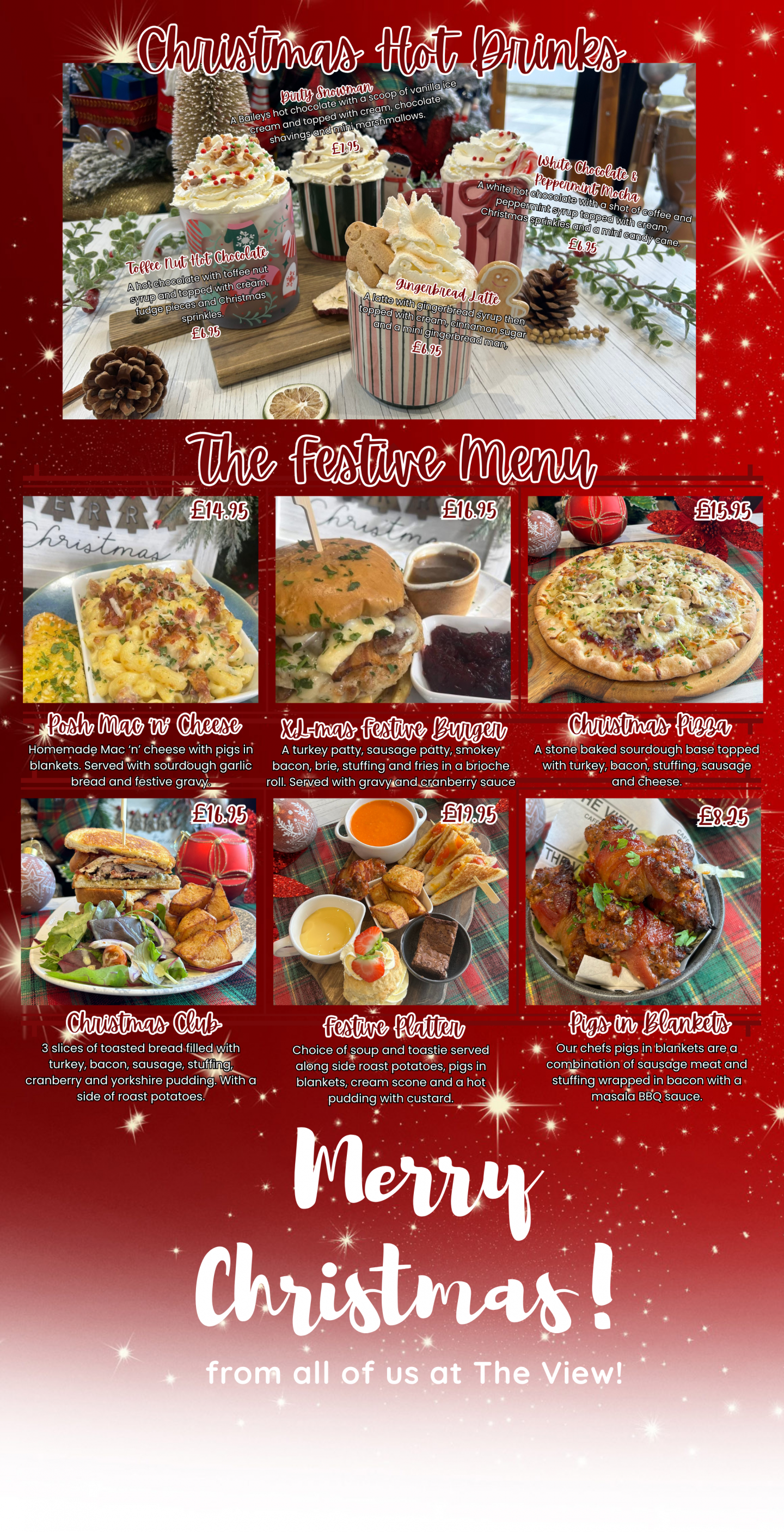 Below we have our incredible selection of Christmas hot drinks that you can enjoy throughout December. Plus our festive menu which we think you need to try at least one of each!