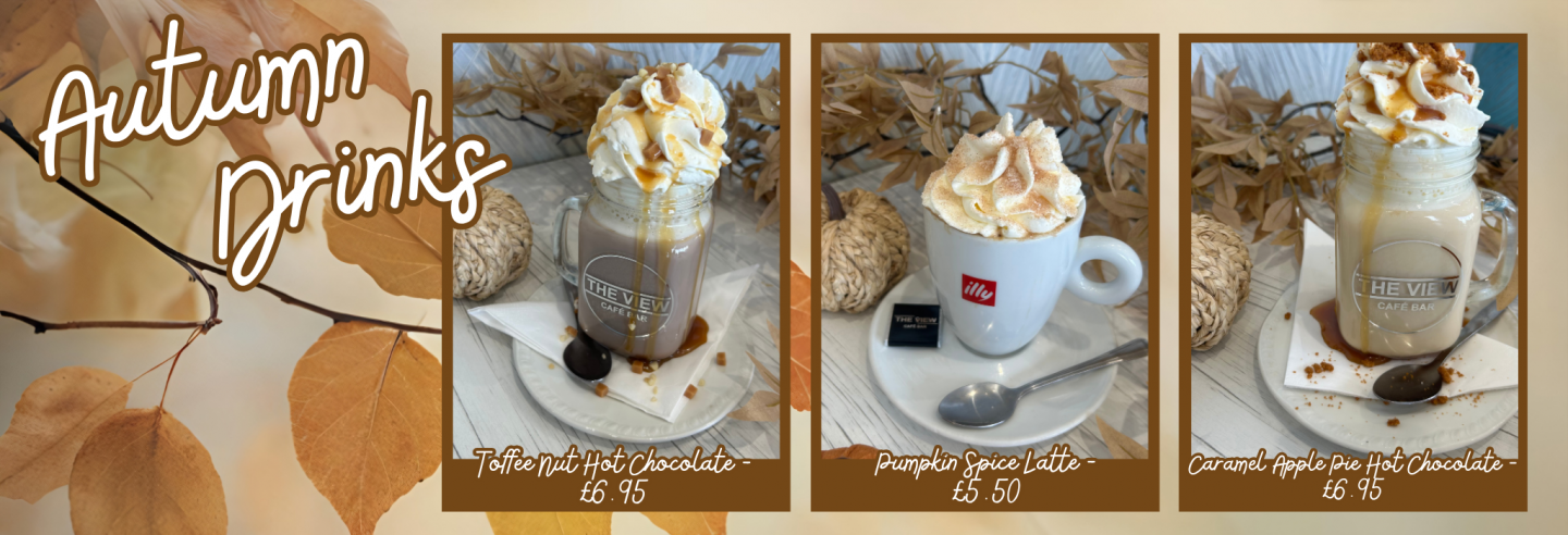 We do love a seasonal drink here at The View and this autumn season we have three for you to enjoy. A classic the Pumpkin Spice Latte and for those that want something sweeter we have the Toffee Nut Hot Chocolate or the Caramel Apple Pie Hot Chocolate.
