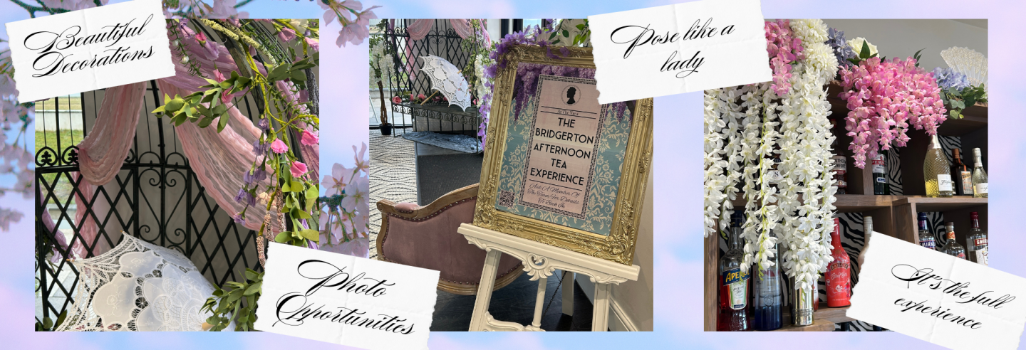 We’ve included all the little details in the is Bridgerton inspired afternoon tea that fans of the books (and show) will love. From the wisteria decorating the stand to the menu that appears to be the latest edition of Lady Whistledown’s column we hope that this will be an exciting treat for all of you that decide to book!