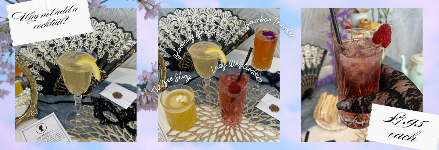 And finally why not upgrade your Bridgerton afternoon tea experience and add a cocktail! Choose from The Blooming Bees Knees, The Lady Whistledown, The Bourbon Traveler or The Bee Sting. Ask a member of staff to get the full ingredients for each one.
