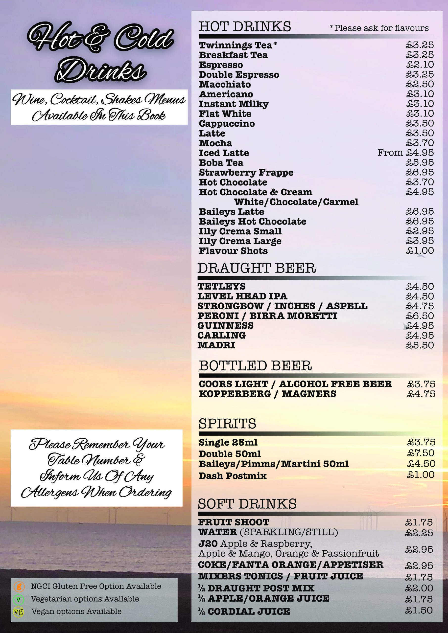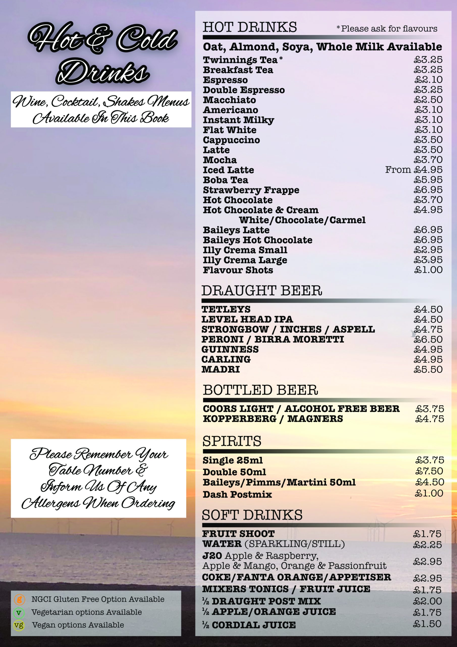 Main Drinks Menu