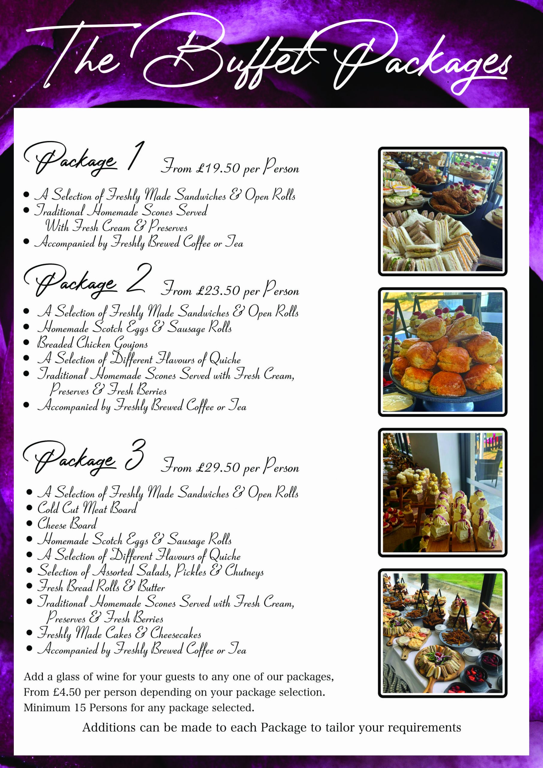 There are few different options when it comes to food for your event. We do of course offer a buffet which is a very popular choice when it comes to hosting a celebration of life but of course also works well for weddings and larger gatherings. There are 3 different package options and you can find these described in full below.